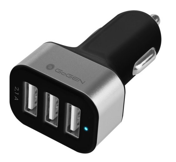 - Nabíjací adaptér GoGEN s troma USB portami s celkovým nabíjacím prúdom 2,1 A a vstupným napätím 5 V