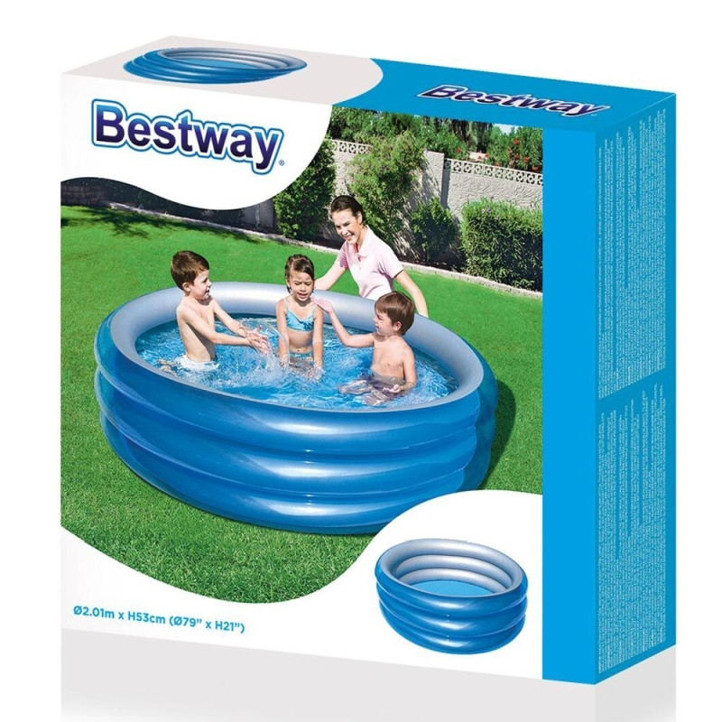 nafukovací záhradný bazén. Bazén sa skladá z troch k sebe navzájom