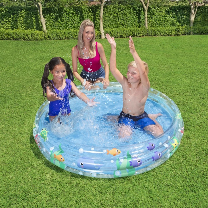 Silné a mäkké steny bazéna sú vyrobené z odolného, číreho vinylu s