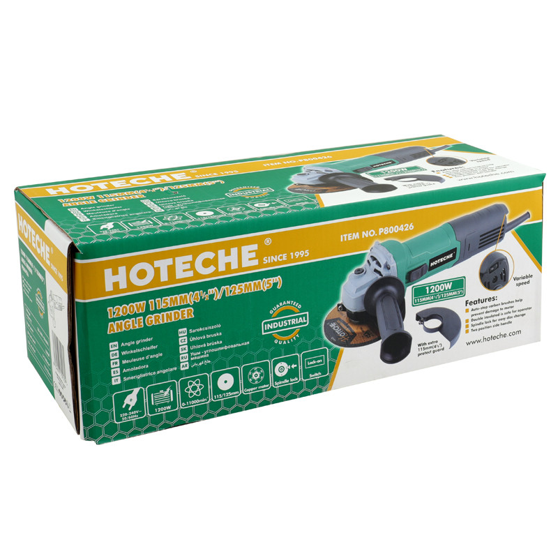 Uhlová brúska 115 mm/125 mm / 1200 W INDUSTRIAL HOTECHE je kompaktný a výkonný nástroj pre vašu dielňu, dom aj garáž pre hobby a domáce použitie.