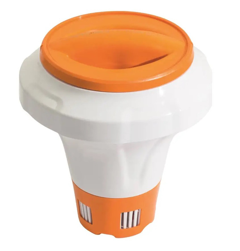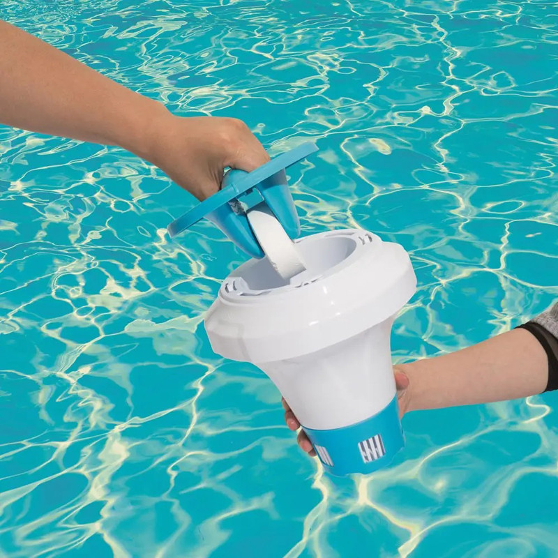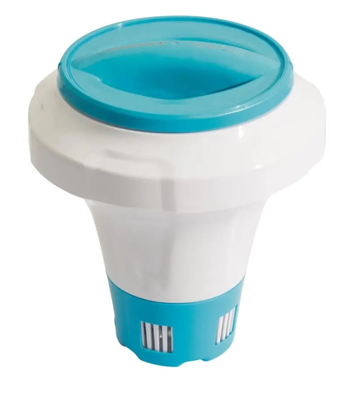 - plávajúci dávkovač zabezpečuje priebežné dávkovanie dezinfekčných a multifunkčných tabliet bazénovej chémie