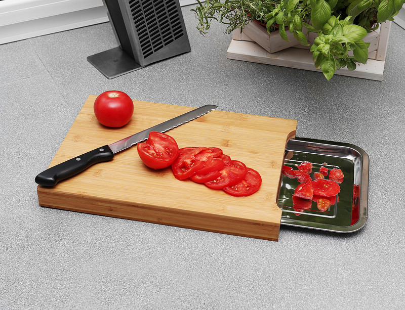 Inovatívna doska na krájanie, ktorá zabezpečí poriadok na pracovnej doske a zároveň zväčší priestor na prípravu potravín.