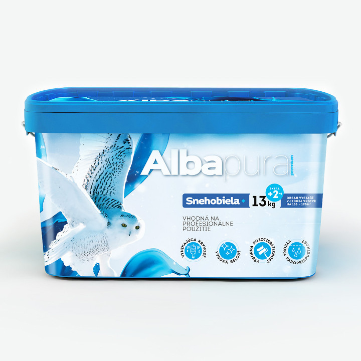 Biela interiérová farba na steny Albapura je moderná, ekologická, vodou riediteľná náterová látka určená na nátery stien v interiéroch. Používa sa na nátery rôznych druhov omietok, vyzretého muriva, sadrokartónu, vystierkovaných podkladov, tapiet a drevených stavebných prvkov. Vytvára biely, hladký, hlboko matný povrch. Náter sa vyznačuje vynikajúcou kryvosťou, vysokou belosťou, oteruvzdornosťou za sucha a má výborné aplikačné vlastnosti.