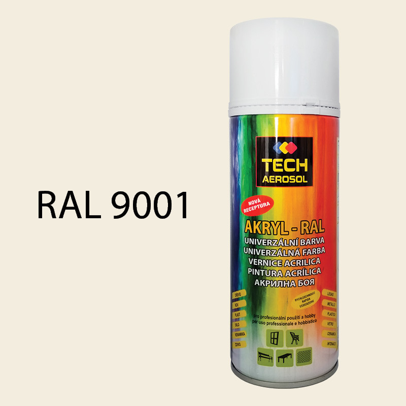 - Farba v spreji akrylová TECH RAL 9001 biela krémová lesklá 400 ml