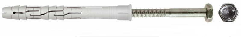 Dlhá rozperná časť zaručuje maximálnu nosnosť prenosom síl do početných priečok v dierovaných tehlách, prípadne do veľkého povrchu vŕtanej diery v stavebných hmotách s nízkou pevnosťou. Vďaka dlhému drieku premosťuje táto hmoždinka ľubovolné stavebné diely a nenosné vrstvy z omietky,