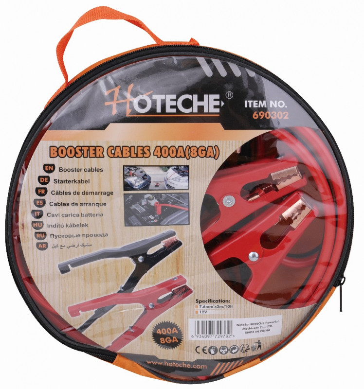 Štartovacie káble pre núdzové štartovanie automobilov. V balení sa nachádzajú dva káble, ktoré sú farebne rozlíšené, pričom na ich koncoch sa nachádzajú klište k jednoduchému upeneniu na póly autobatérie štartovaného a štartovacieho vozidla.