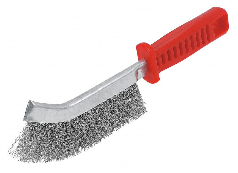 - ručný oceľový kartáč s vlnitým drôtom a ergonomicky tvarovanou plastovou rukoväťou