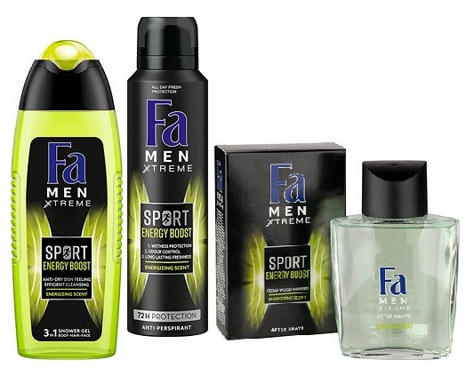 - sprchový gél Fa Men Sports Energy Boost 250 ml s povzbudzujúcou vôňou pre dlhotrvajúcu sviežosť