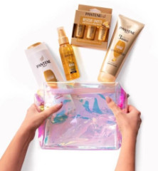 - s darčekovou sadou v krásnej kozmetickej taške Pantene Golden Cosmetic Bag Xmas Pack bude o vaše vlasy postarané