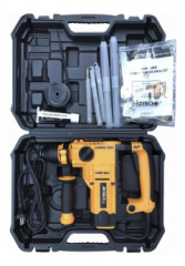 - dodané príslušenstvo: 1 ostrý sekáč 200 mm, 1 plochý sekáč 200 mm, 3 SDS+ vrtáky (Ø 8 / 10 / 12 mm), hĺbkový doraz, mazací tuk, prachová manžeta, kľúč, prídavná rukoväť, plastový kufrík