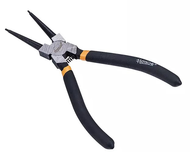 - kliešte na poistné krúžky vnútorné - krúžky nasadzujeme do otvorov a pomocou klieští stlačíme vnútorný krúžok k sebe, tým zmenšíme jeho priemer a môžeme krúžok pohodlne namontovať alebo demontovať