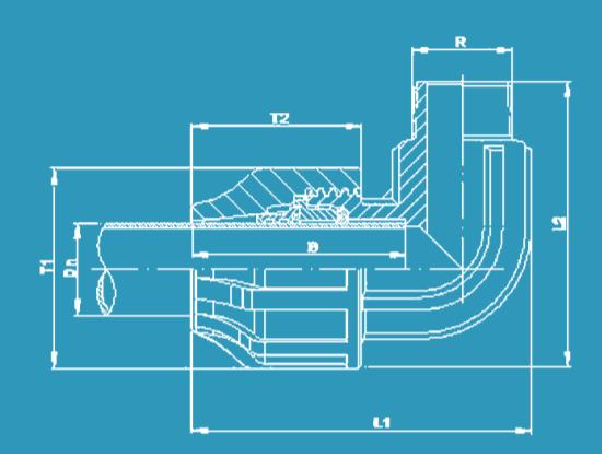 - Dn 32, R 3/4", L1 105,5, L2 83,5, T1 64,5, T2 49, B 60,5