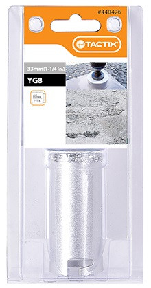 - vykružovacia korunka s okrajom z karbid volframu pre čisté a presné vŕtanie keramických obkladov a dlaždíc
