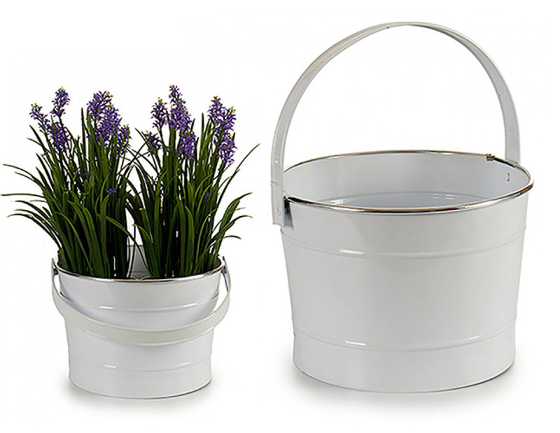 - dekoratívny kovový kvetináč v tvare vedra vhodný do interiéru aj exteriéru