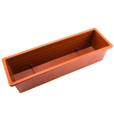 Plastový praktický truhlík terakotovej farby, vhodný na zasadenie voňavých byliniek.