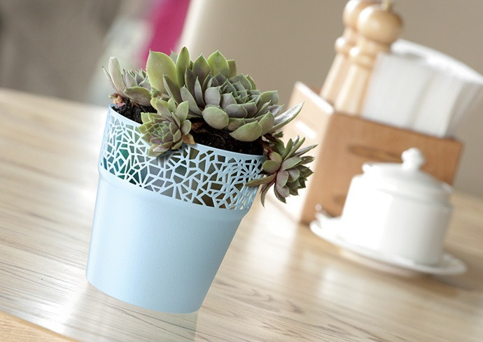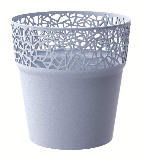 - ozdobný plastový obal na kvetináč TREE má jednoduchý tvar a okraj lemovaný elegantným čipkovaným vzorom