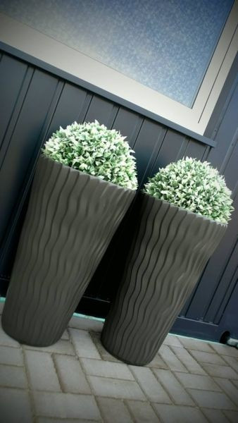 - krásne zdobené kvetinače s povrchom s jemnými vertikálnymi vlnkami, ktoré napodobňujú piesočné duny zvlnené na povrchu vánkom