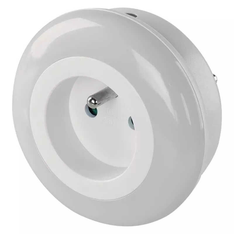 LED nočné svietidlo do siete s fotosenzorom a priechodnou zásuvkou.