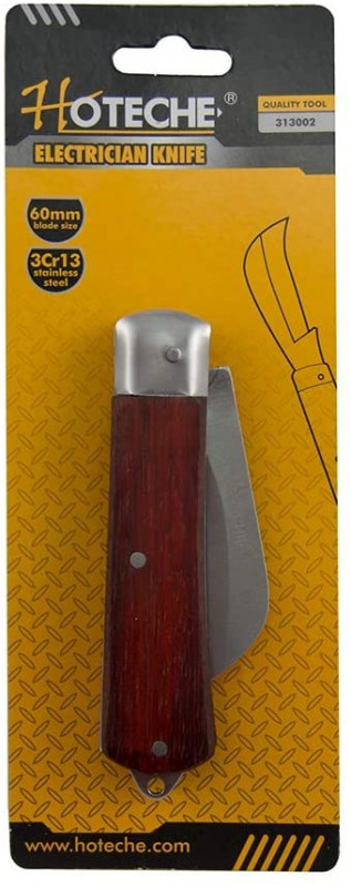 zatvárací elektrikársky nôž s drevenou rukoväťou