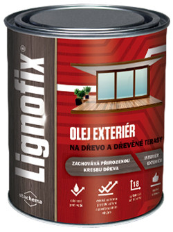 - Lignofix OLEJ EXTERIÉR je jemná homogénna olejová emulzia na ošetrenie drevených povrchov v exteriéri napr. pergol, plotov, záhradného dreveného nábytku, terasových podláh a pod.