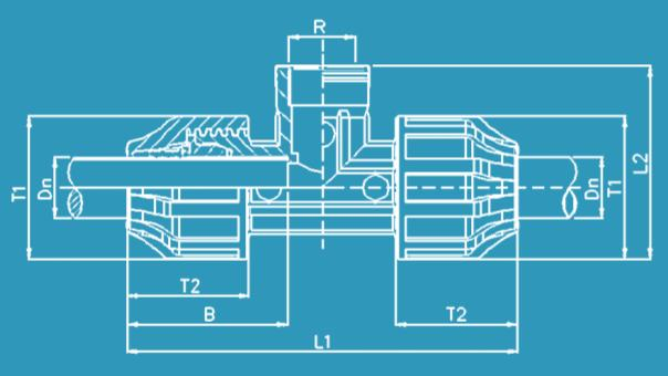 - T-kus 32 x 3/4" x 32 vnútorným závit pre spájanie LDPE a HDPE potrubí