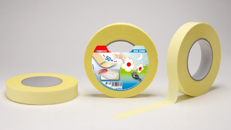 Krepová maskovacia lepiaca páska vhodná na maskovanie kriviek a kruhov.