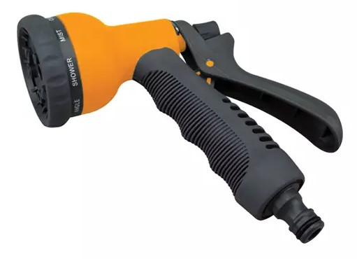 - praktická zavlažovacia pištoľ s 8 nastaviteľnými funkciami (potok, vertikálne, plný, plochý, sprcha, stredový, hmla, kužeľ)