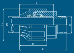 - Dn 25, R 1/2", L1 79, T1 54, T2 46, B 57,5