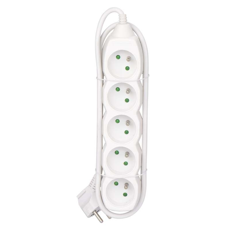 Predlžovací prívod 1,5 m na 230 V~ slúži na predĺženie elektrickej energie tam, kam pevná zásuvka nedosiahne.dĺžka: 1,5 mpočet zásuviek: 5× 2P + PEnapätie/prúd: 250 V~/10 A max.farba: bielavodič: H05VV-F3G 1 mm2detské clonky: ánotyp izolácie: PVCmateriál zásuvky a vidlice: plastmax. záťaž: 2 300 W