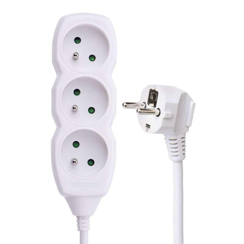Predlžovací prívod 3 m na 230 V~ slúži na predĺženie elektrickej energie tam, kam pevná zásuvka nedosiahne.dĺžka: 3 mpočet zásuviek: 3× 2P + PEnapätie/prúd: 250 V~/10 A max.farba: bielavodič: H05VV-F3G 1 mm2detské clonky: ánotyp izolácie: PVCmateriál zásuvky a vidlice: plastmax. záťaž: 2 300 W