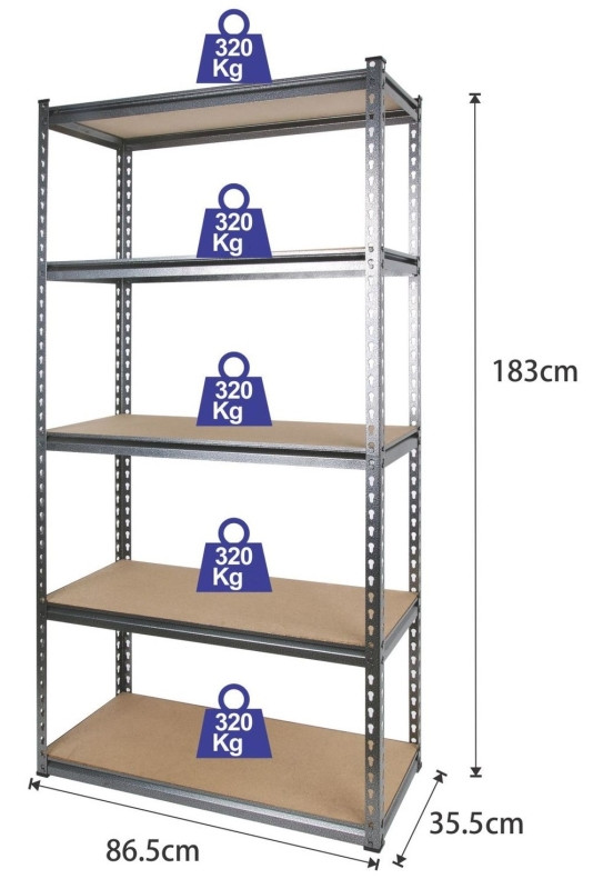 Regál 5-policový kovový 865x355x1830 mm / nosnosť 1600 kg TACTIX (329016)