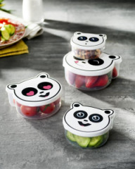 Uzatvárateľné nádoby s vekom s dekoráciou pandy. Perfektne sa hodia na skladovanie ovocia, zeleniny alebo rôznych jedál.