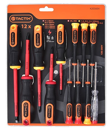 - Sada elektrikárskych skrutkovačov (PL;PH) 12 ks TACTIX (205604)