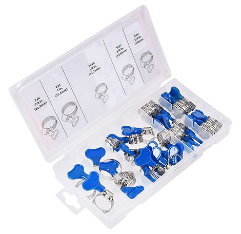 - sada hadicových spôn rôznych veľkostí uložených v praktickom plastovom organizéri so systémovými priehradkami