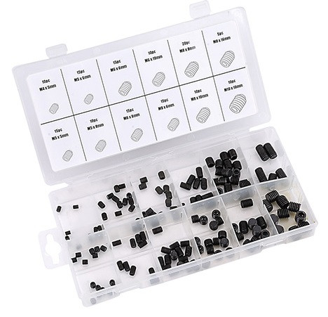 - sada obsahuje imbusové nastavovacie skrutky s vnútorným 6hranom (červík) s plochým (rovným) koncom