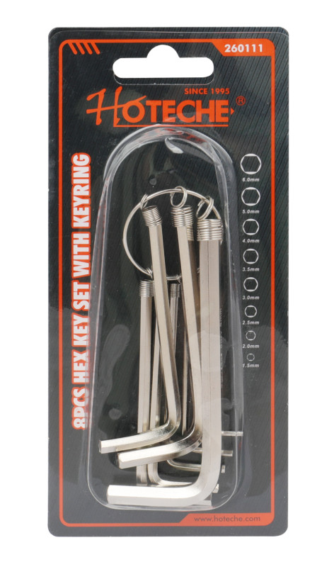 Sada imbusových kľúčov na krúžku (1,5-6 mm 8 ks Cr-V HOTECHE HT260111