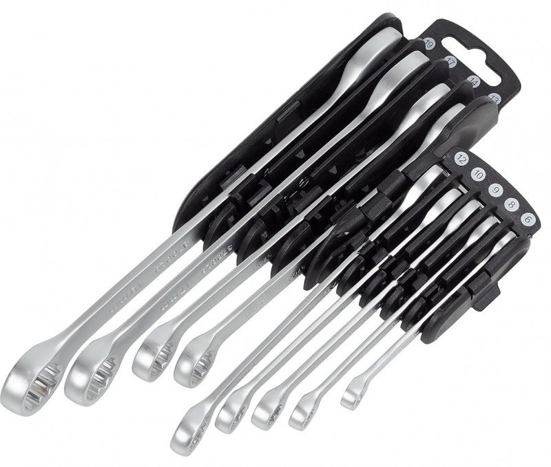 - 9-dielna sada očko-vidlicových kľúčov: 6 - 8 - 9 - 10 - 12 - 13 - 14 - 17 - 19 mm