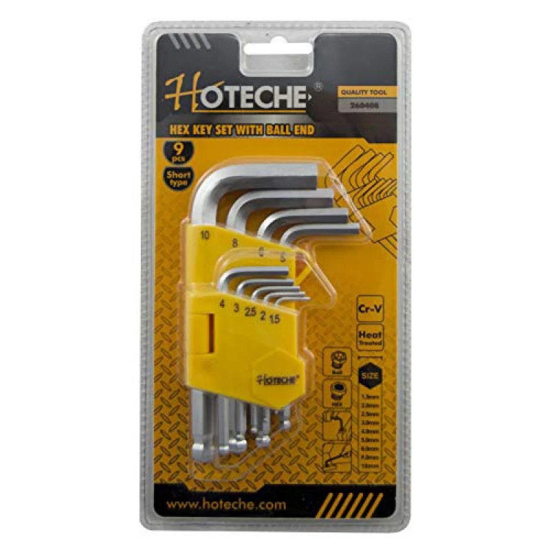 - Sada krátkych imbusových kľúčov s guličkou (1.5-10 mm 9-dielna HOTECHE HT260408