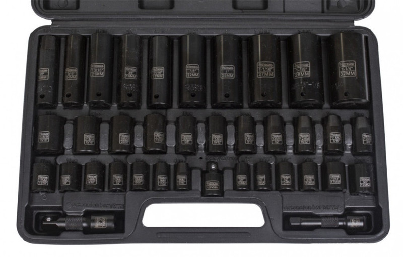 - sada nástrčných hlavíc vyrobená z chróm-vanádiovej ocele - kovaná a tepelne ošetrená povrchovou úpravou čiernym oxidom