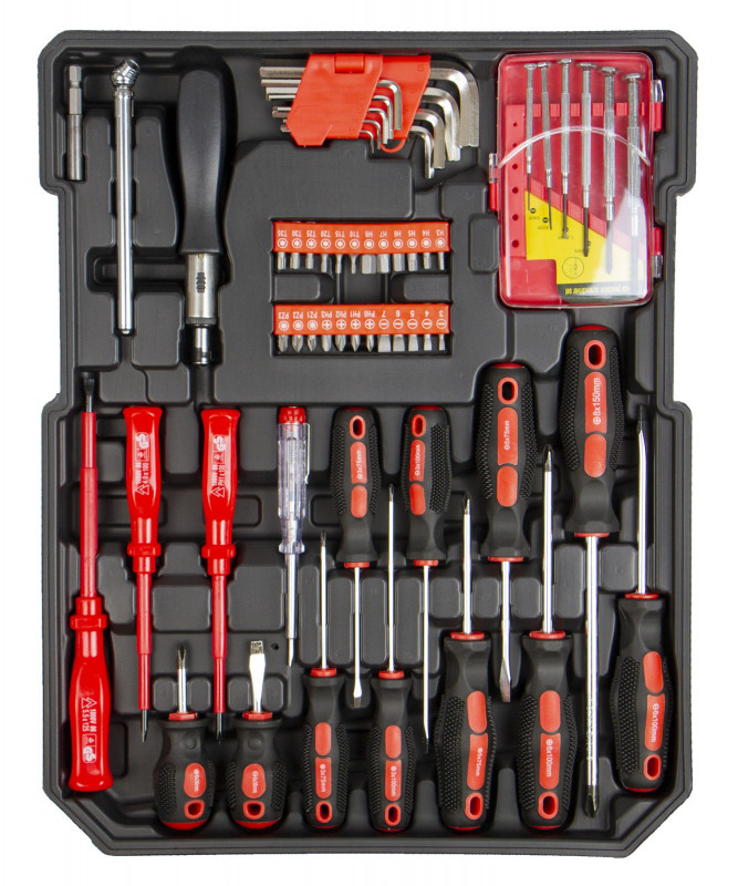| 3 x skrutkovač elektrikársky (PL5.5x125, 4x100; PH1x100) | 1 x skúšačka napätia | 11 x skrutkovač (5 x PL, 6 x PH) |