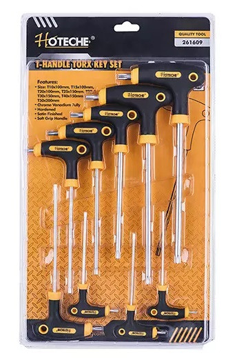 - Sada torxových kľúčov s T-rukoväťou (T10x100-T50x200 mm 9-dielna HOTECHE HT261609