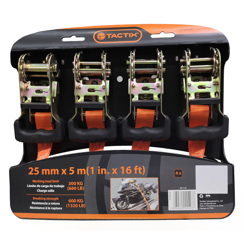 Sada upínacia račňová 4-dielna 25 mm x 5 m / 300 kg TACTIX (376034)