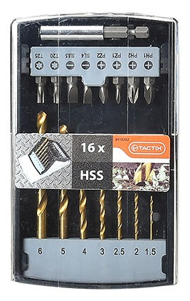 - Sada vrtákov do kovu HSS-TiN a bitov S2 16 ks TACTIX (418702)