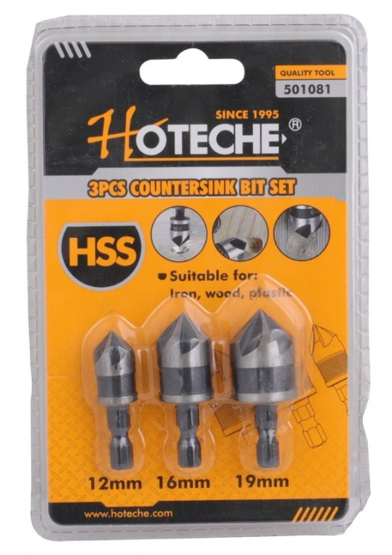 Sada záhlbníkov HSS 3-dielna (12;16;19 mm HOTECHE HT501081