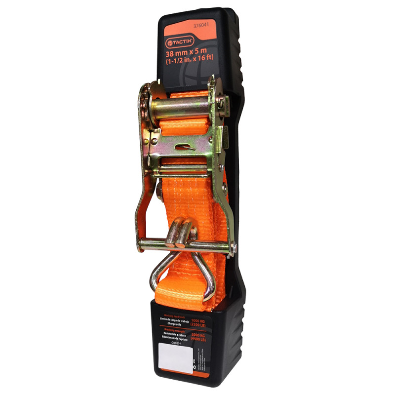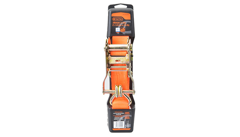 Vďaka použitiu račne dokážete popruh maximálne napnúť bez väčšej námahy. Ako zakončenie oboch popruhov sú použité háky.