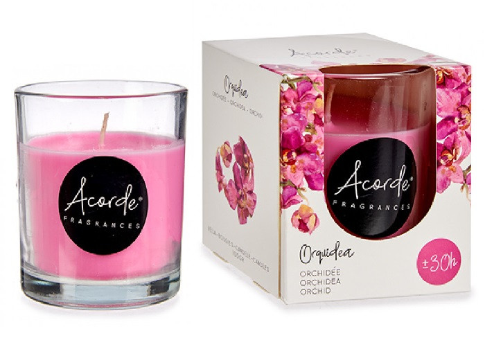 - sviečka v sklenenom poháriku s vôňou orchideí