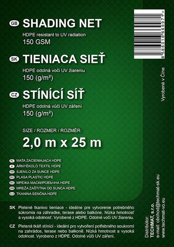 Gramáž: 150 g/m² (vyššia gramáž = vyššia tienivosť) Farba: tmavozelená
