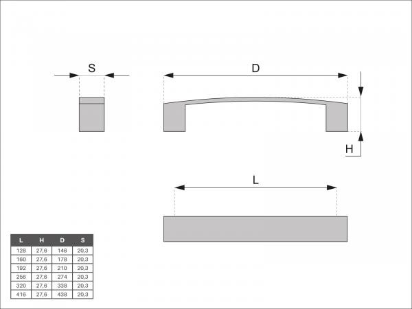celková dĺžka úchytky D: 146,178,210,274,338,438 mm