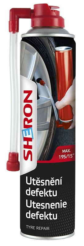 - SHERON utesnenie defektu 400 ml je veľmi dobrý pomocník pri riešení defektu na neznámom mieste, v nebezpečných situáciách (krajinice diaľnice) či pri nemožnosti výmeny kolesa (zatuhnuté skrutky)