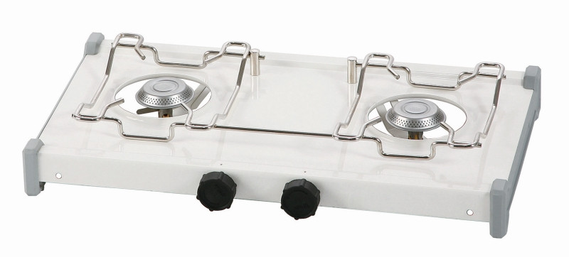 Stolový dvojvarič RIO 2 na propán-bután určený na varenie a ohrievanie pokrmov. Dodáva sa vrátane príslušenstva pre pripojenie k 2 kg propán-butánovej fľaši (nie je súčasťou dodávky).